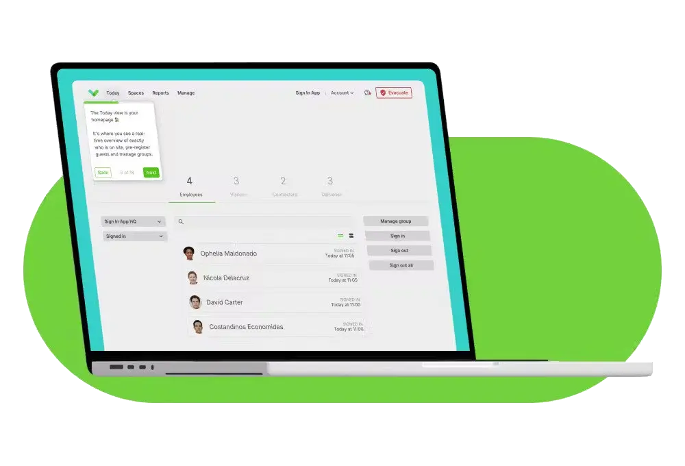Visitor Sign In isn’t just for guests. Use the system to register employee arrivals, support flexible workforce tracking, and improve accountability across your sites.
